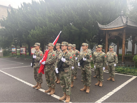 仪式伊始,主持人介绍了本次活动的背景、意义和目的,国旗护卫队身着统一迷彩服,在激昂的《义勇军进行曲》中,护旗方队沿着指定路线,迈着整齐有力的步伐,护卫着五星红旗走向升旗台,伴随着雄壮的国歌声,鲜艳的五星红旗冉冉升起,全体人员神情庄重,退役军人、少先队员向国旗敬礼,其他人员行注目礼,向伟大祖国致以崇高的敬意和美好的祝福。升旗完毕,优秀退役军人代表发言,结合自己军旅生涯经历讲述革命先辈英勇奋斗的事迹,并寄语现场的同学们:“历史的接力棒已经传到你们手中,希望大家珍惜时光、勤奋学习,将来为祖国建设贡献力量。”