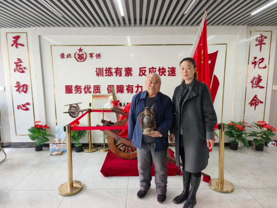 “这个‘马灯’是我父亲1948年淮海战役支前时,在夜间推车照明用的,上面系的红绸带是当时的‘暗号’,用来告诉对方来的是‘自己人’。”谢发孝虽已年逾古稀,但回忆往昔,依然精神矍铄,眼神中闪烁着光芒。“这个‘枪套’和‘水壶’是我从军时用的,今天把它们一起捐给军供站,希望对你们的工作有帮助。”