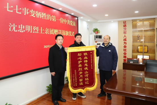沈忠明烈士亲属向市退役军人事务局赠送锦旗