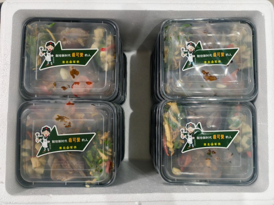 接到任务后,淮北军供站高度重视,提前精心设计食谱,采购食材,确保菜品丰富、营养均衡,并提前规划运输路线。当天,保障人员提前到位,大家克服天气寒冷等不利因素,以高涨的热情全力投入到热食制作工作中,并使用保温箱为餐食保温,第一时间送至训练场,保证训练人员及时吃上了热气腾腾的饭菜。