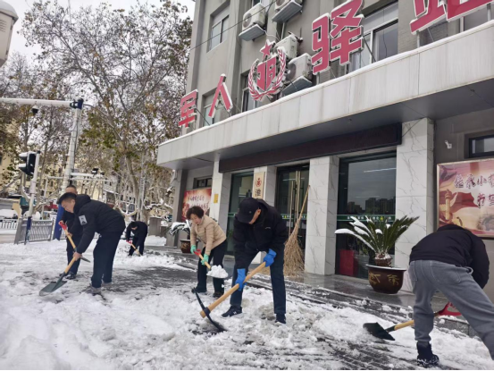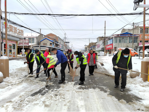 市退役军人服务中心号召基层退役军人服务站,积极组织辖区内退役军人志愿服务者,参与到除雪铲冰行动中。